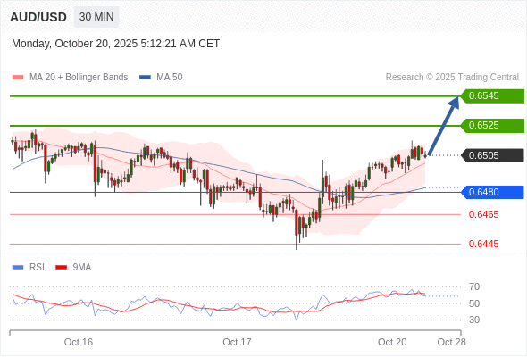 在 0.6480 之上,看涨,目标价位为 0.6525 ,然后为 0.6545 。