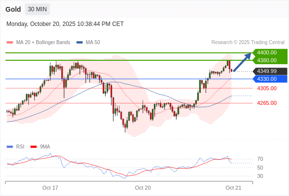 在 4330.00 之上,看涨,目标价位为 4380.00 ,然后为 4400.00 。