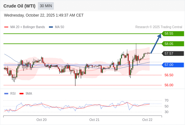 在 57.00 之上,看涨,目标价位为 58.05 ,然后为 58.55 。