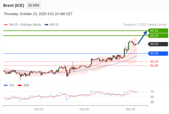 在 63.00 之上,看涨,目标价位为 65.00 ,然后为 65.55 。