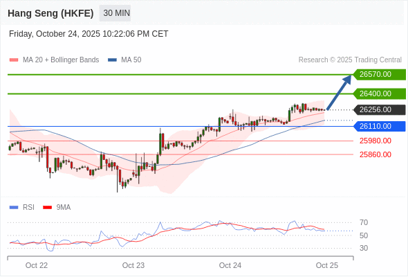 香港恒生指数期货 当日内: 超短线(当日内)支撑位在26110.00附近。