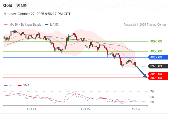 在 4022.00 之下,看跌,目标价位为 3942.00 ,然后为 3924.00 。