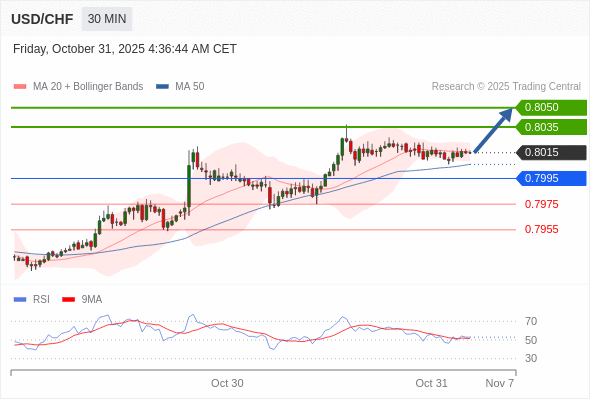 在 0.7995 之上,看涨,目标价位为 0.8035 ,然后为 0.8050 。