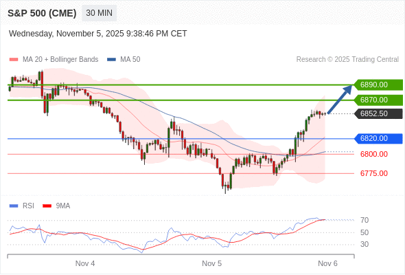 在 6820.00 之上,看涨,目标价位为 6870.00 ,然后为 6890.00 。