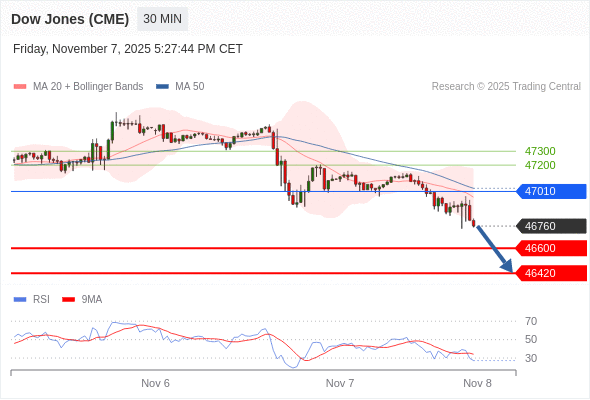 在 47010 之下,看跌,目标价位为 46600 ,然后为 46420 。