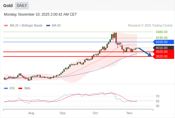 在 4150.00 之下,看跌,目标价位为 3925.00 ,然后为 3820.00 。