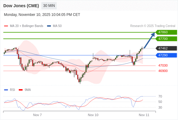 在 47290 之上,看涨,目标价位为 47700 ,然后为 47860 。