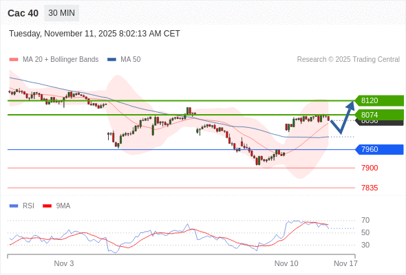 在 7960 之上,看涨,目标价位为 8074 ,然后为 8120 。