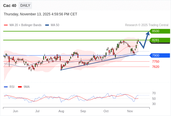 Cac 40 短线: 在7900之上,看涨。