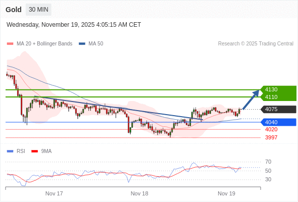 在 4040 之上,看涨,目标价位为 4110 ,然后为 4130 。