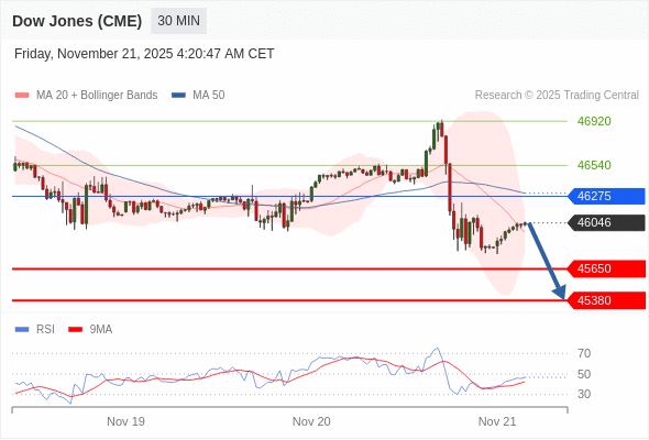 在 46275 之下,看跌,目标价位为 45650 ,然后为 45380 。