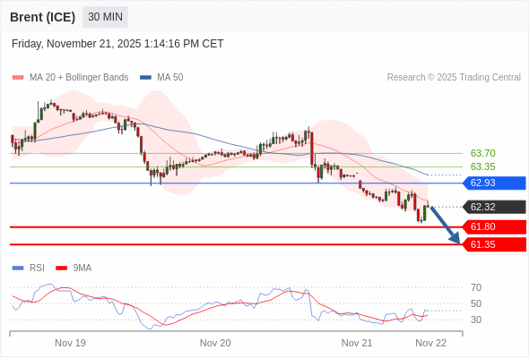 在 62.93 之下,看跌,目标价位为 61.80 ,然后为 61.35 。