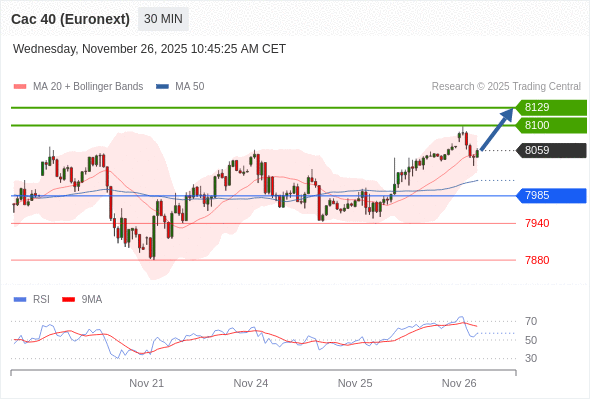 在 7985 之上,看涨,目标价位为 8100 ,然后为 8129 。