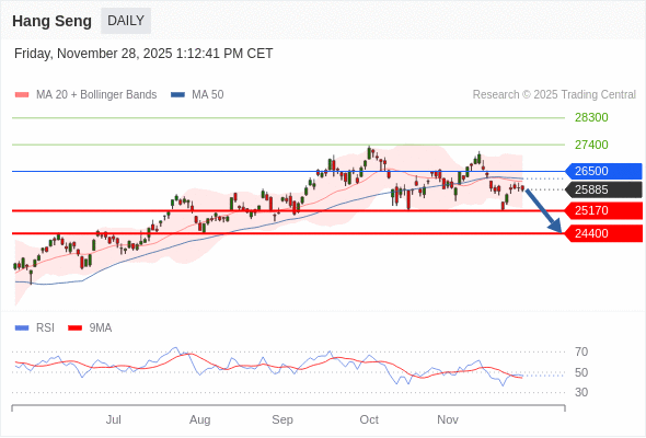 在 26500 之下,看跌,目标价位为 25170 ,然后为 24400 。