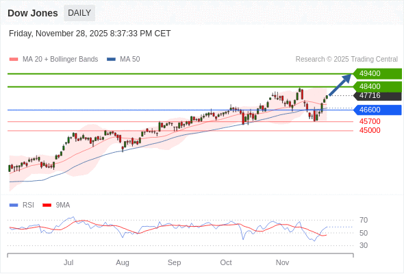 在 46600 之上,看涨,目标价位为 48400 ,然后为 49400 。