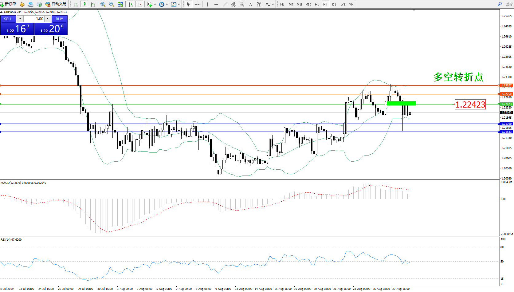 备选策略:1.22423上方看涨,目标1.22750、1.23027