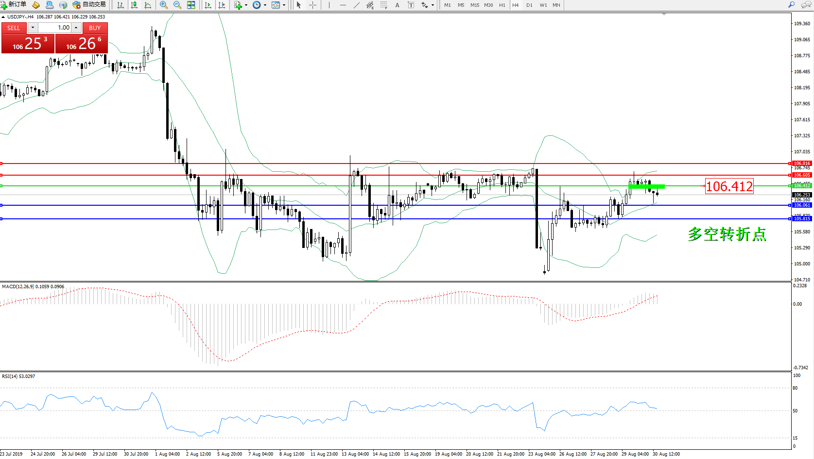 交易策略:106.412下方看跌,目标106.061、105.815