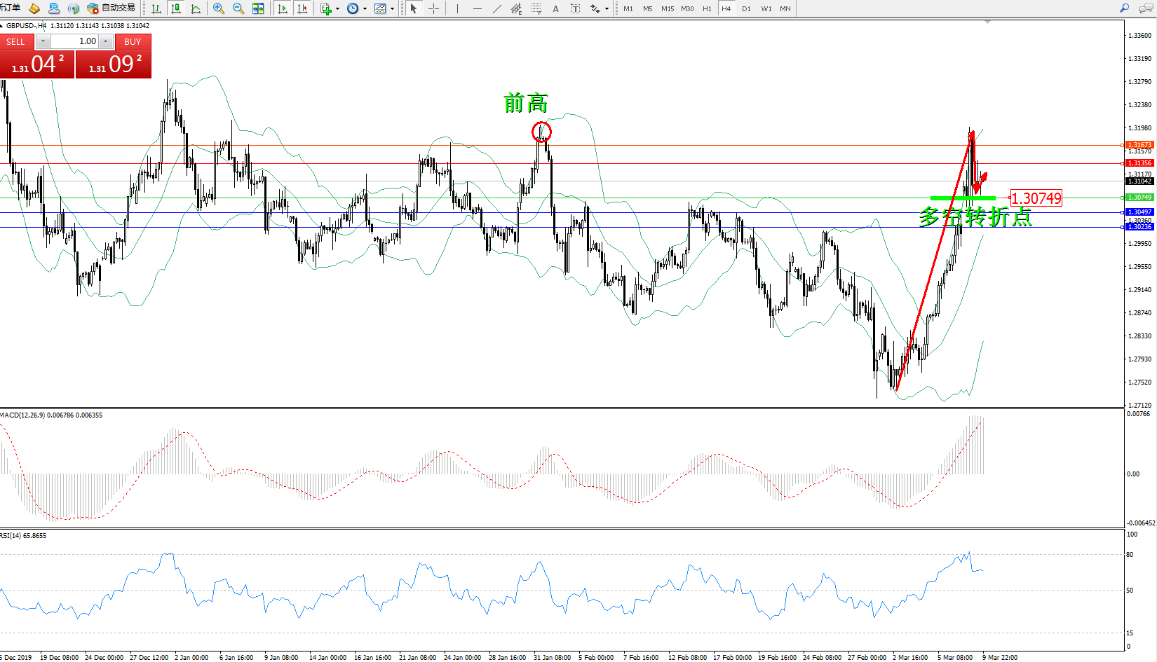 交易策略:1.30749上方看涨,目标1.31356、1.31673