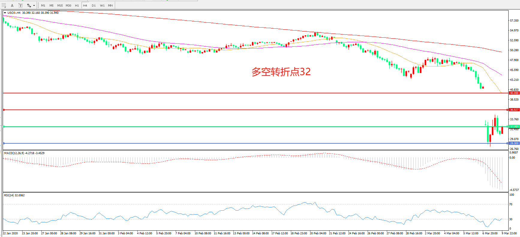 周一(3月9日),“原油战争”全面爆发,沙特大幅降低售价,开启战火,俄罗斯则强硬表示它可以提高产量,并能在未来6至10年内应对低油价。在世界经济已然面临疫情威胁的当下,主要产油国之间的价格战完全是“火上浇油”,美国WTI原油周一大跌26.74%,报33.28美元/桶,录得1991年海湾战争以来的最大单日跌幅,各方如果不能尽快恢复谈判,还会大大增加市场对经济衰退的预期。