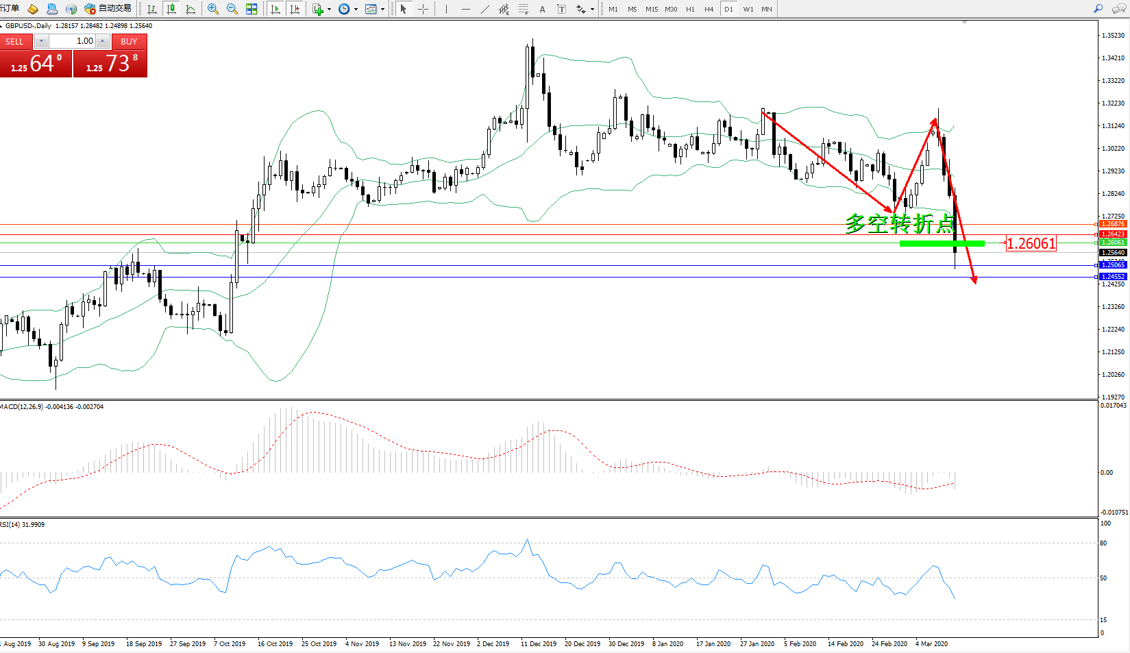 交易策略:1.26061下方看跌,目标1.25065、1.24552