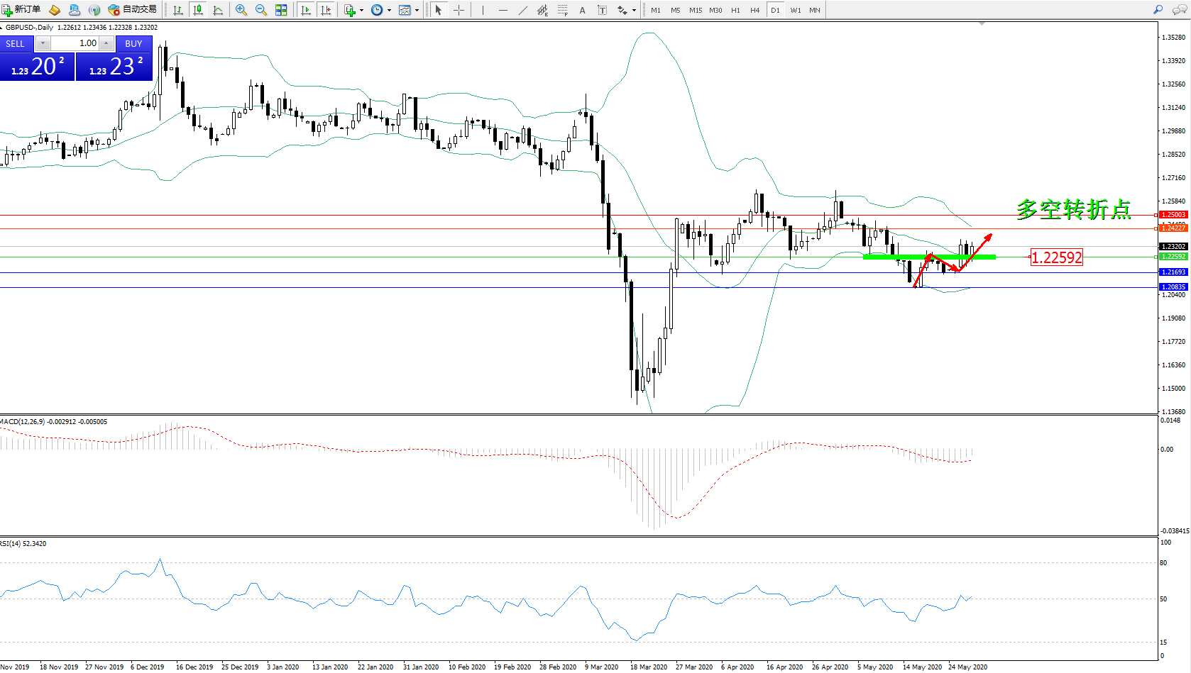 交易策略:1.22592上方看涨,目标1.242271.25003