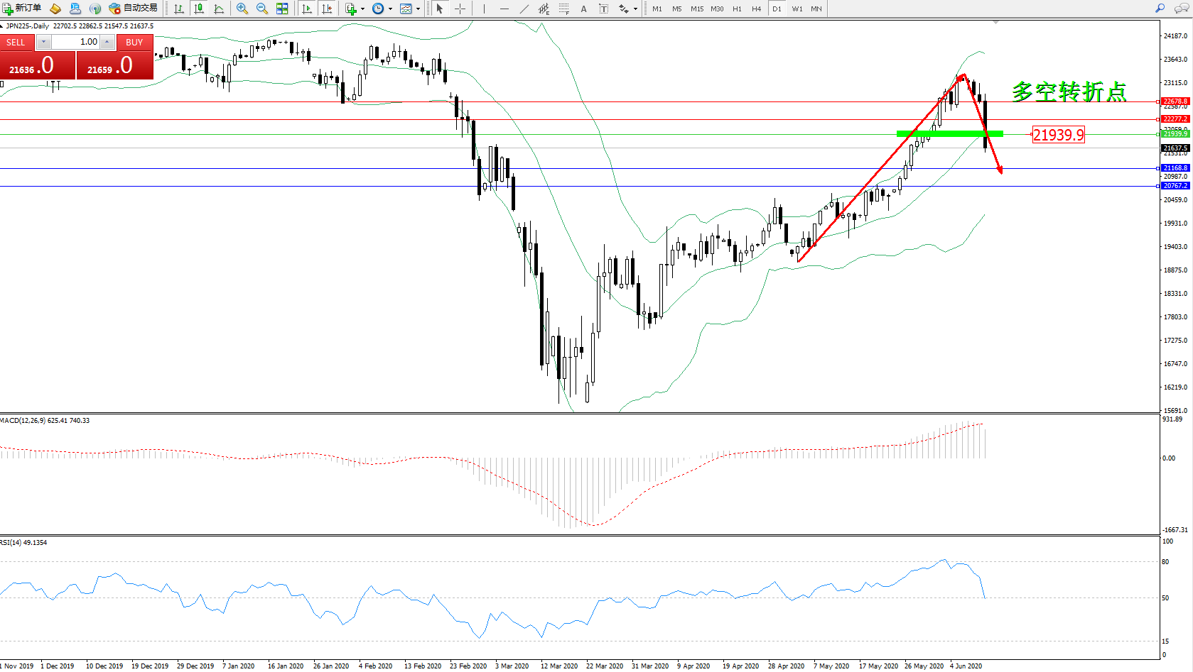 日经225指数611日(周四)收盘下跌644.95点,跌幅2.79%,报22480.00点。新冠疫情和经济前景忧虑推动亚洲股市和商品货币走低,与此同时亚洲股市纷纷走低。美联储在决策声明中表示,中期内经济面临“相当大的风险”。此外,经合组织关于全球经济今年将会萎缩6%的预期也对市场风险人气形成了打压;而且美国新冠肺炎确诊患者累计超过200万人,也打压市场人气;相比日本经济恢复而言,美国恢复显得更快。日本央行下周将举行政策会议,市场预计,日本央行将会承诺继续收购日本国债和企业债券,但是留给其进一步扩大政策力度的空间已经非常有限.