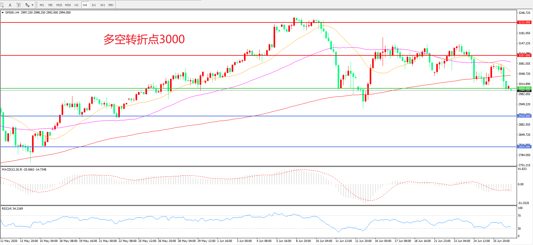 上周五(6月26),美国单日新冠确诊人数接近5万人,创历史新高,引发市场极大担忧,,美股三大股指均下挫2%以上,标普500震荡下行,收报3007.75点。美国芝加哥联邦储备银行总裁埃文斯日前表示,预计美国经济要到2022年底才能恢复到疫情前的水平。