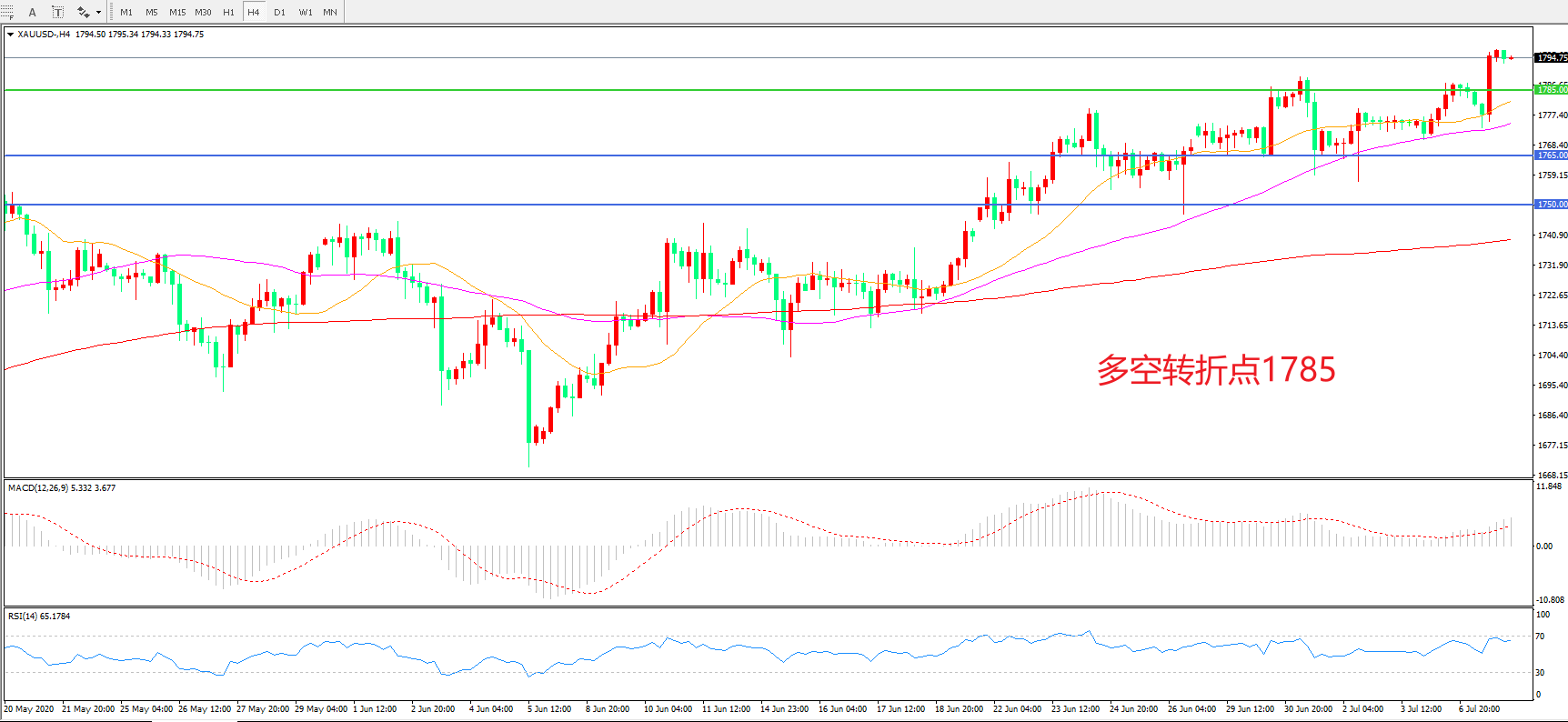 交易策略:在1785.00之上看涨,目标1800.00 1820.00