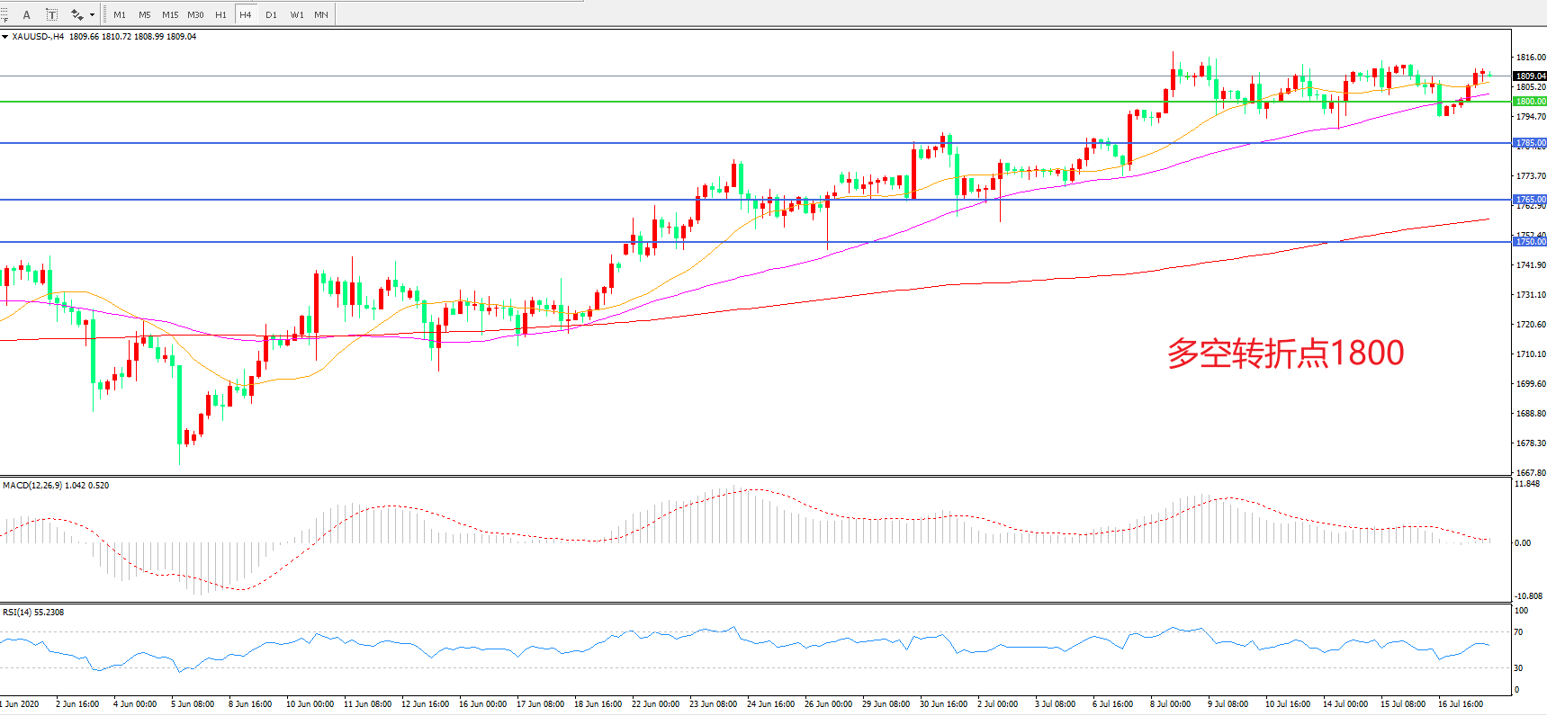 交易策略:在1800.00之上看涨,目标1820.00 1845.00