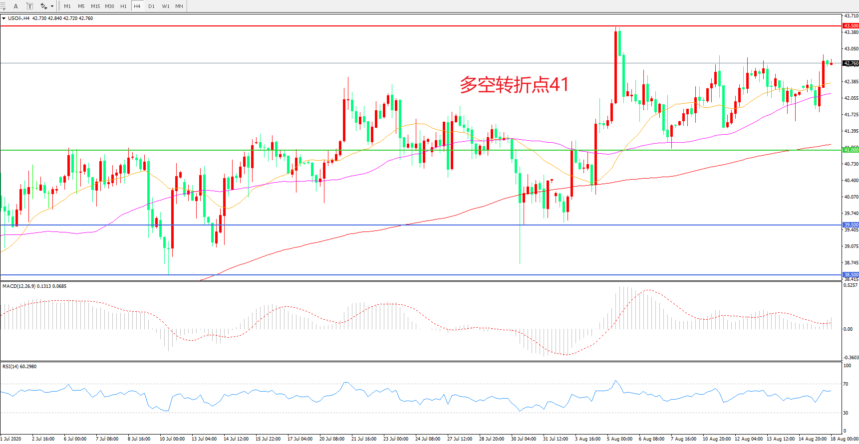 交易策略:在41.00之上看涨,目标43.50         46.00