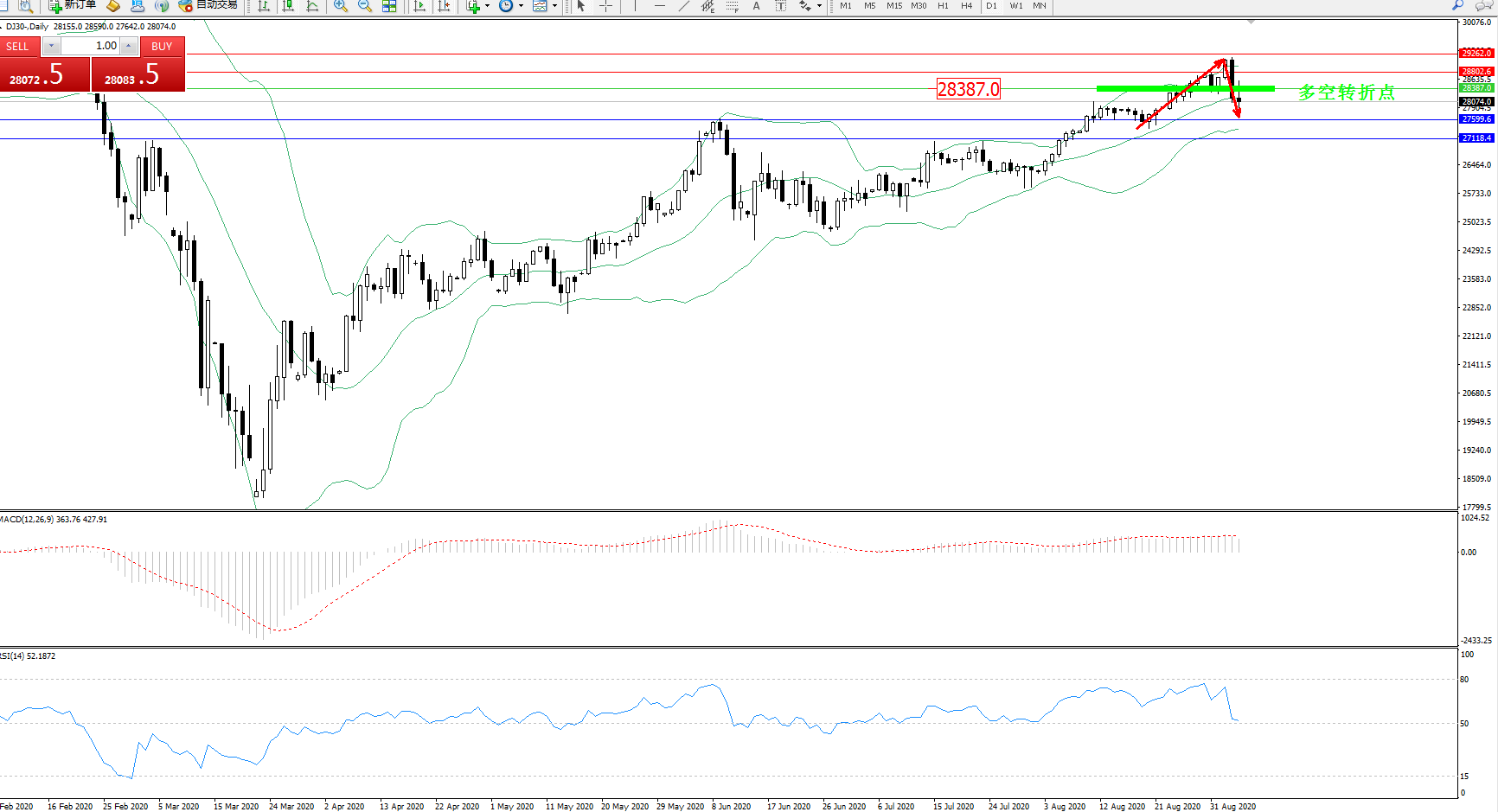 道琼斯指数9月4日(周五)收盘下跌159.40点,跌幅0.56%,报28133.31点。美股三大指数集体收跌,美国股市从沉重跌势中反弹,但由于大型科技股的拖累,股指仍收于两周最低水平;股指跌幅收窄至略高于1%。金融股的上涨限制了标普500指数的跌势,该指数本周下跌2.3%,收于8月21日以来的最低水平。8月非农就业岗位增加了137.1万,失业率从7月份的10.2%降至8.4%。且数据显示美国8月就业增长进一步放缓,金融市场的下跌加剧了人们对需求疲软的担忧,周五股市的大跌似乎是由于投资者担心近期科技股的涨势与整体人气无关,仅是一家公司的大规模期权交易所致。美元指数升至一周高位。但这些涨幅在周五下午被抹去,因美国股指在稍早触及一个月低点后反弹。