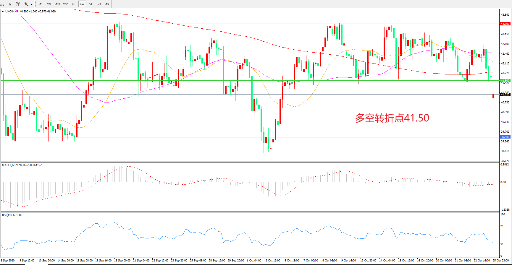 交易策略:  在41.50之下看跌,目标39.50      37.00