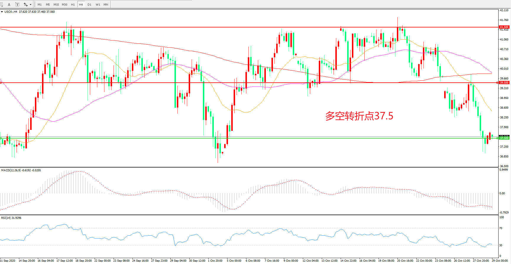交易策略: 在37.50之下看跌,目标35.00 31.50