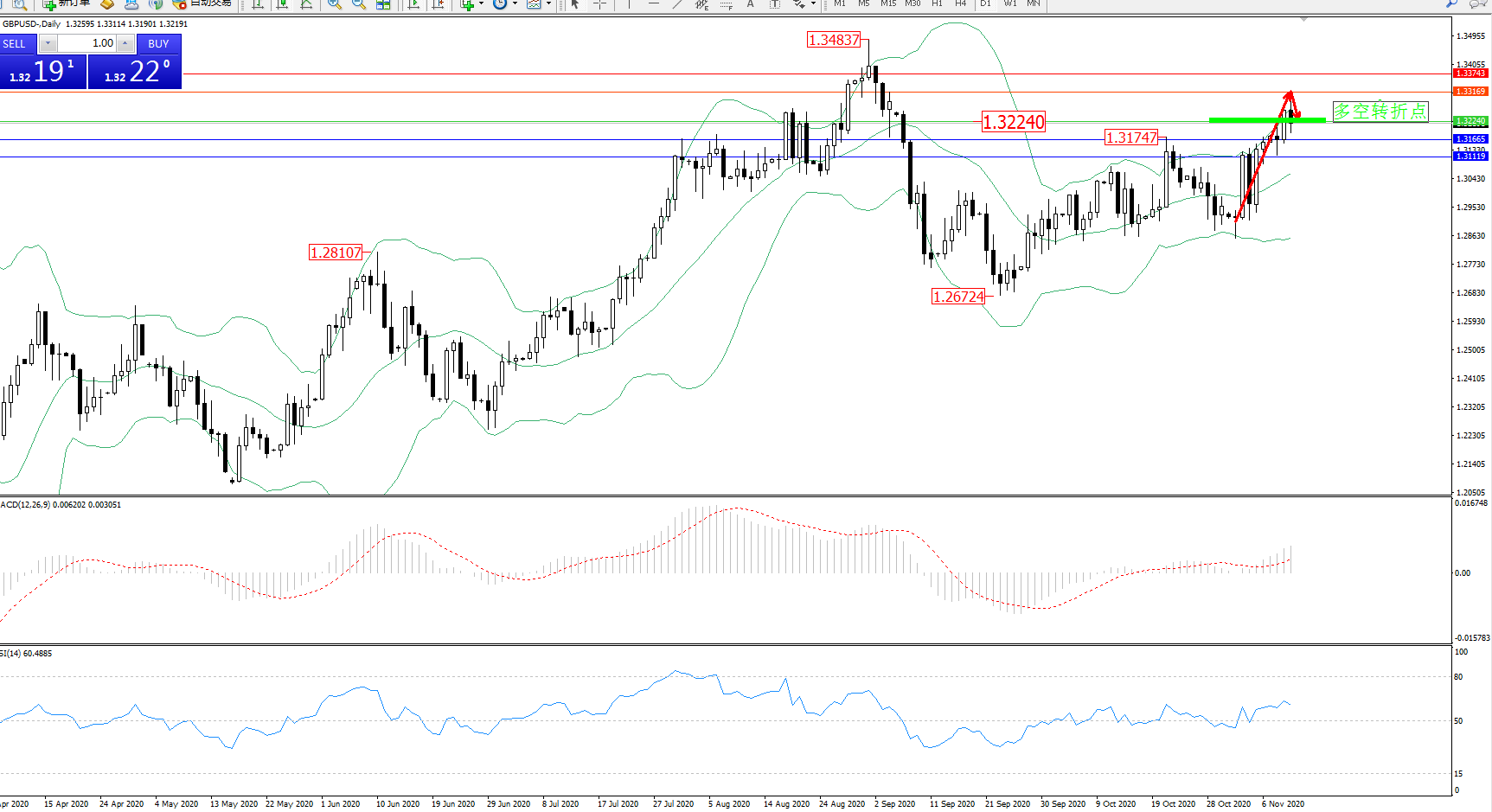 备选策略:1.32240上方看涨,目标1.33169、1.33743