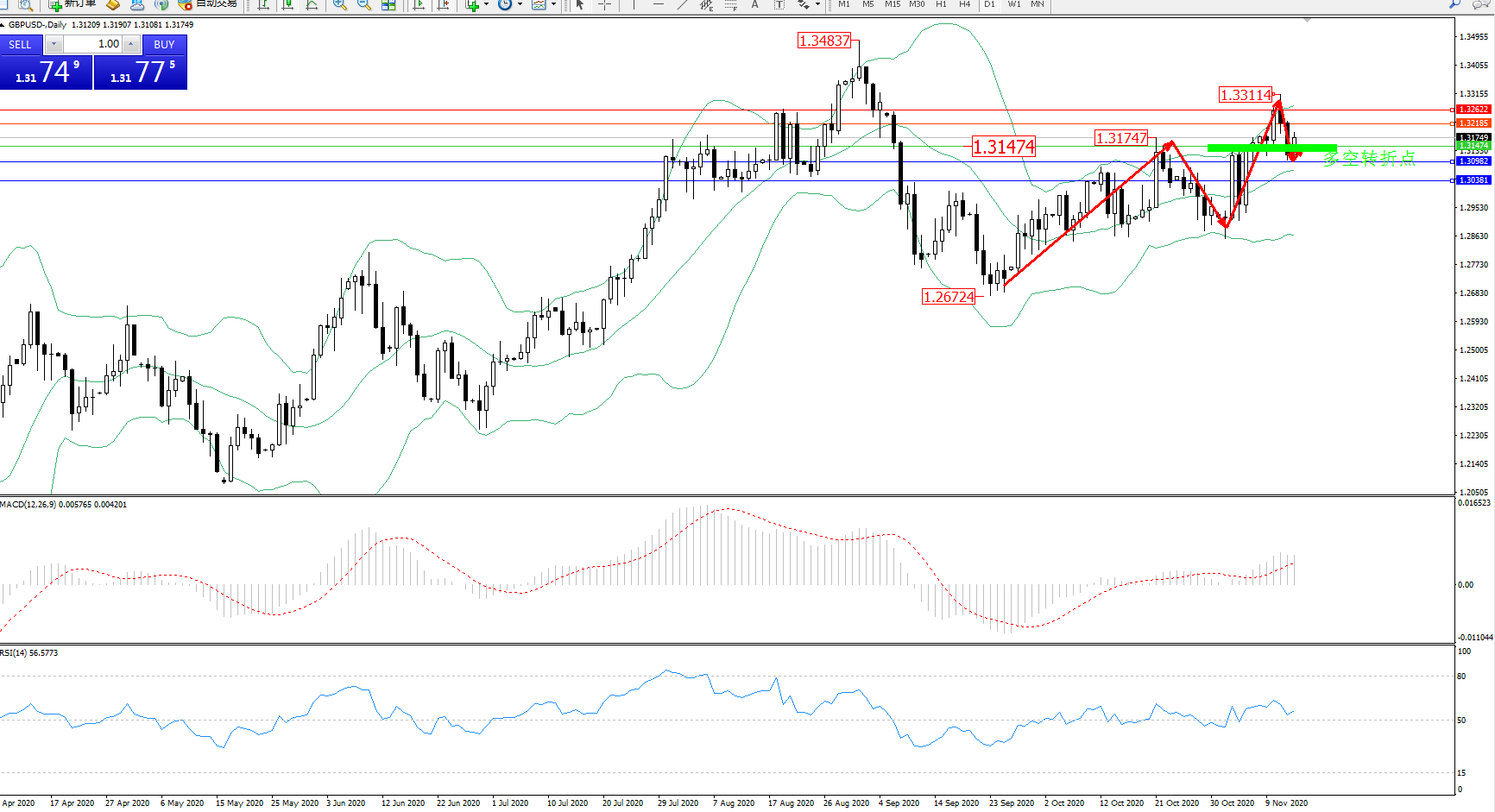 交易策略:1.31474上方看涨,目标1.32185、1.32622