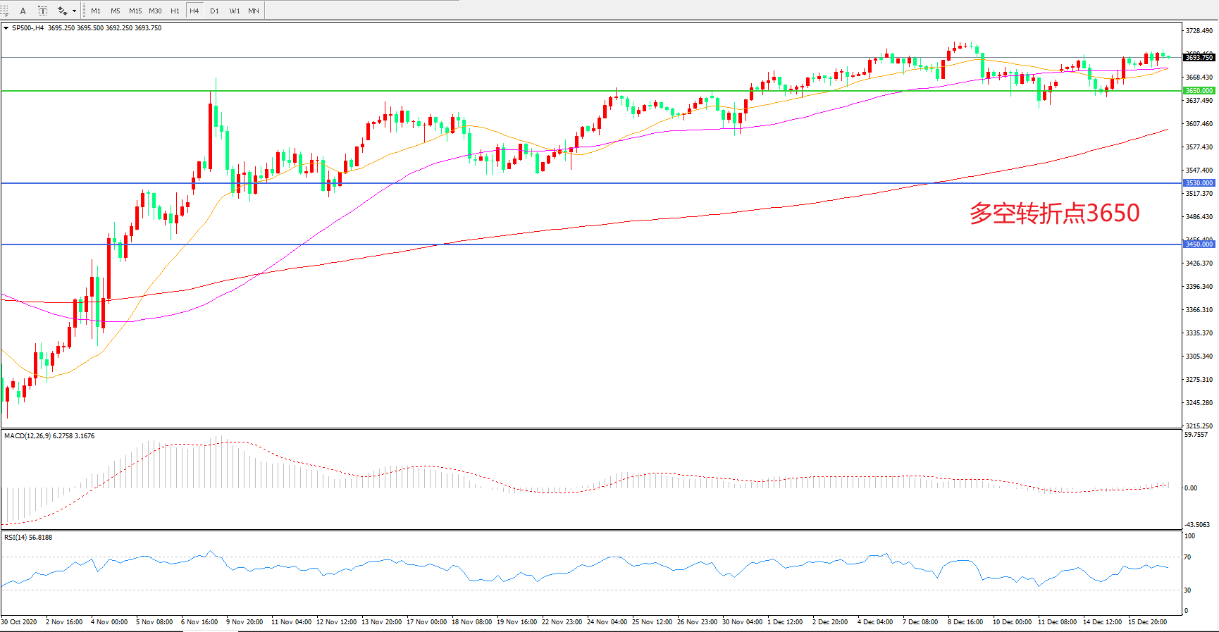多空转折点:3650.00