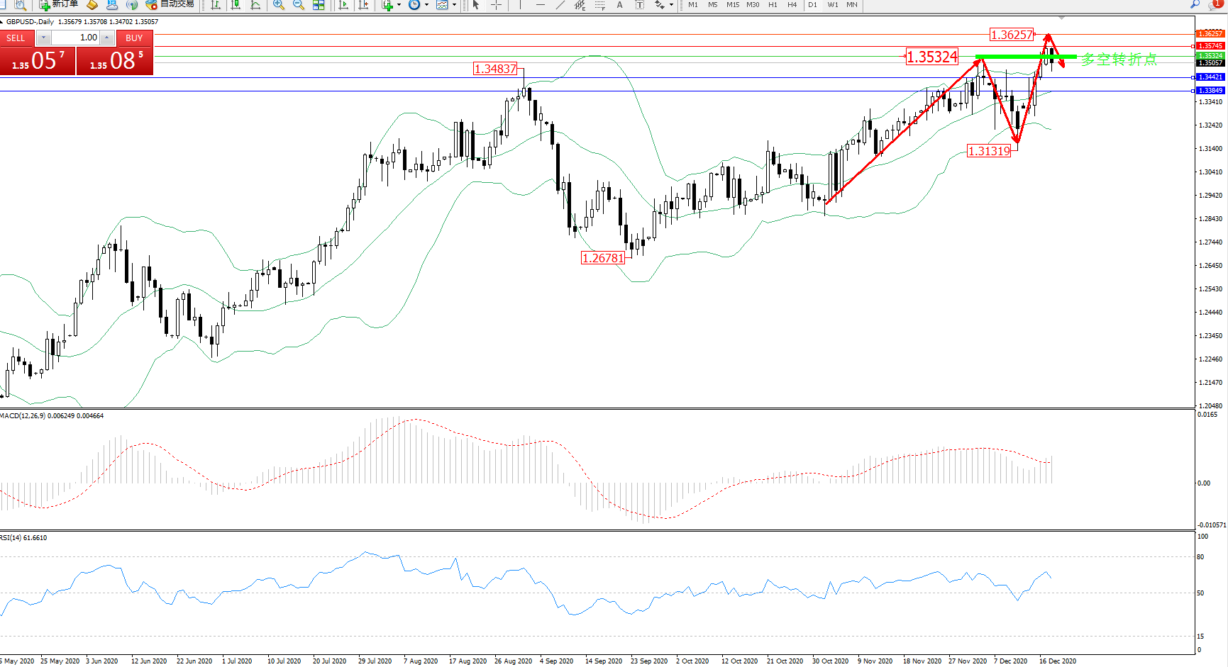 交易策略:1.35324下方看跌,目标1.34421、1.33849