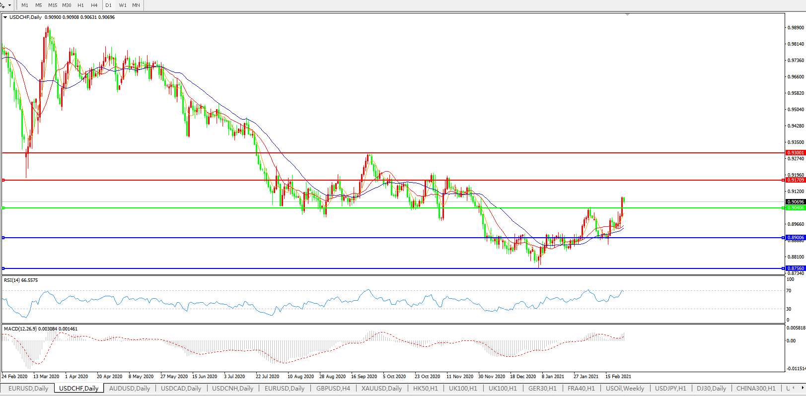 美元指数温和反弹,美元兑瑞郎突破重要压制