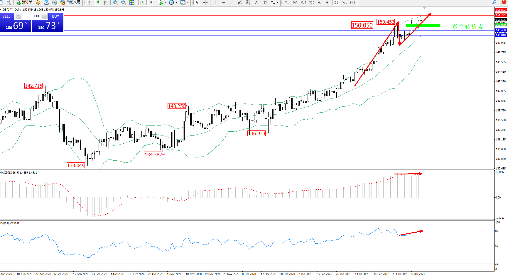 英镑兑日圆高位150.676附近弱势震荡向上移动,英国消费者2月大幅缩减支出,当月为抗疫封锁的第二个月,不过对经济的信心达到12个月最高水准。2月消费者支出较上年同期下降13.8%,与1月锐减约16%的情况类似。必需品支出增长5.3%,线上日常用品采购大增。但非必需品支出锐减22.1%,许多企业仍为关闭状态。英国经济去年遭受三个世纪来最大幅度的下滑后,一旦抗疫限制在现在至6月底之间解除,经济料将强劲增长。其进行的一项调查显示,消费者对整体经济的信心上升4个百分点至28%,为去年疫情大流行以来最高点位。这是在2月19日至22日之间对2,003人进行的调查。之后英国财政大臣苏纳克(Rishi Sunak)上周宣布在新预算计划中延长对家庭和企业的支撑。英国央行正在关注大幅增加的家庭储备中有多少拿来花费,以试图评估经济反弹的可能力道。