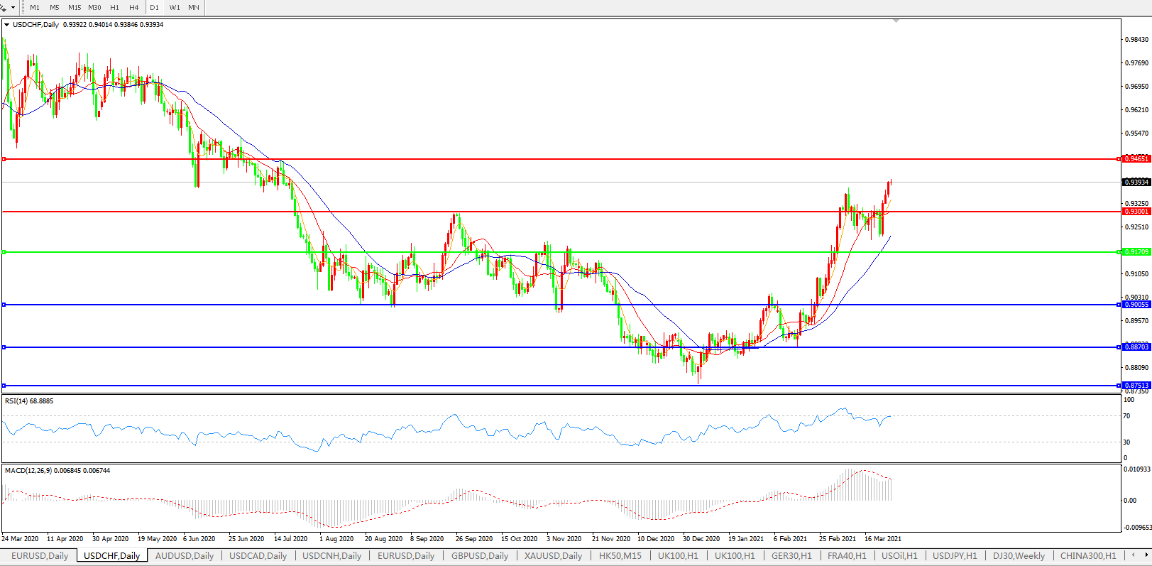 交易策略:0.9170上方看涨,目标0.9300、0.9465