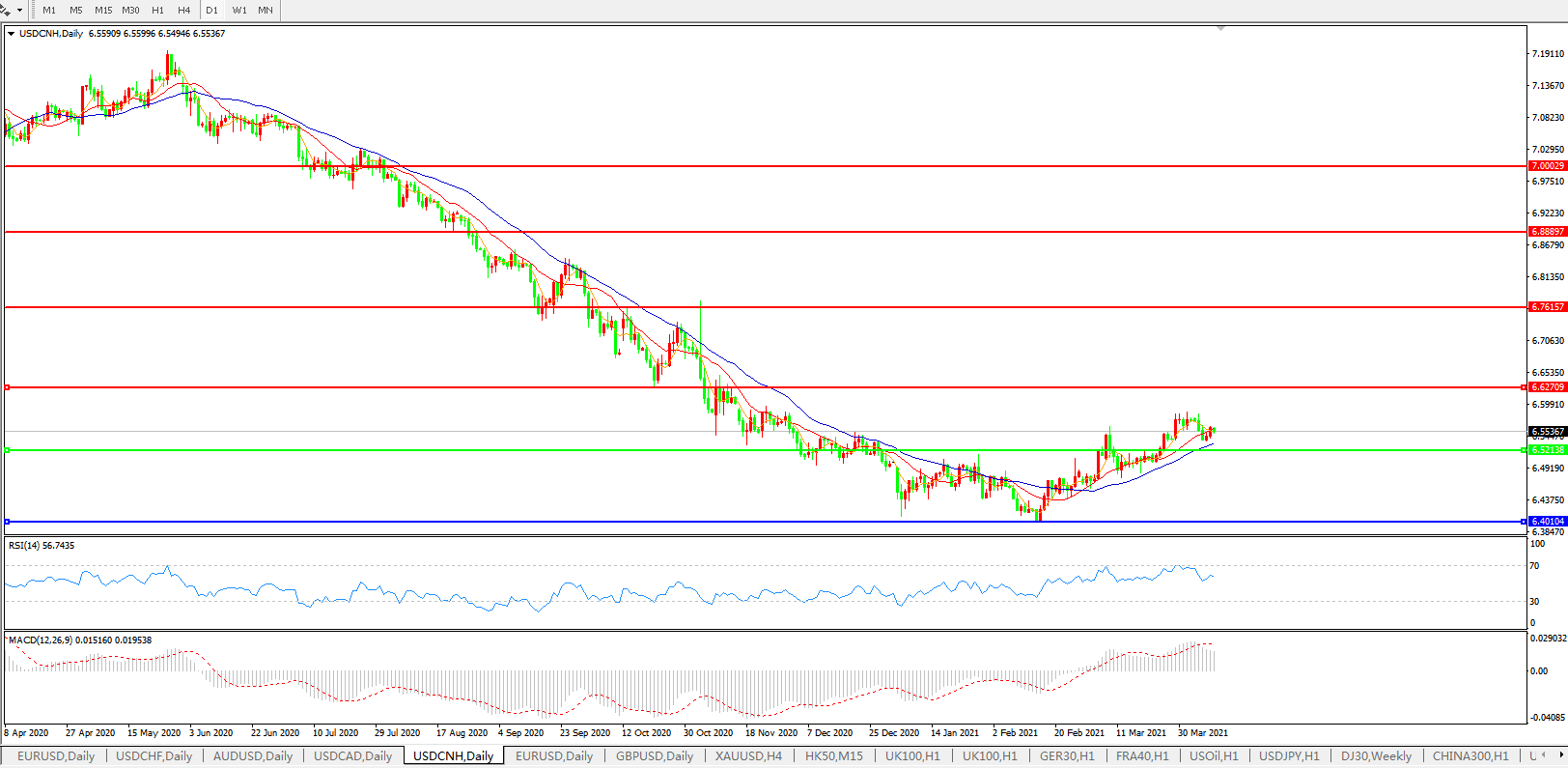 交易策略: 在6.5200之上,看涨,目标价位为6.6300,然后为6.7615。