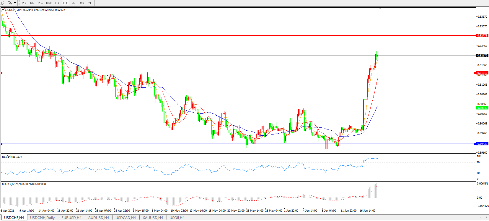 美元指数持续上行,美元兑瑞郎涨势如虹