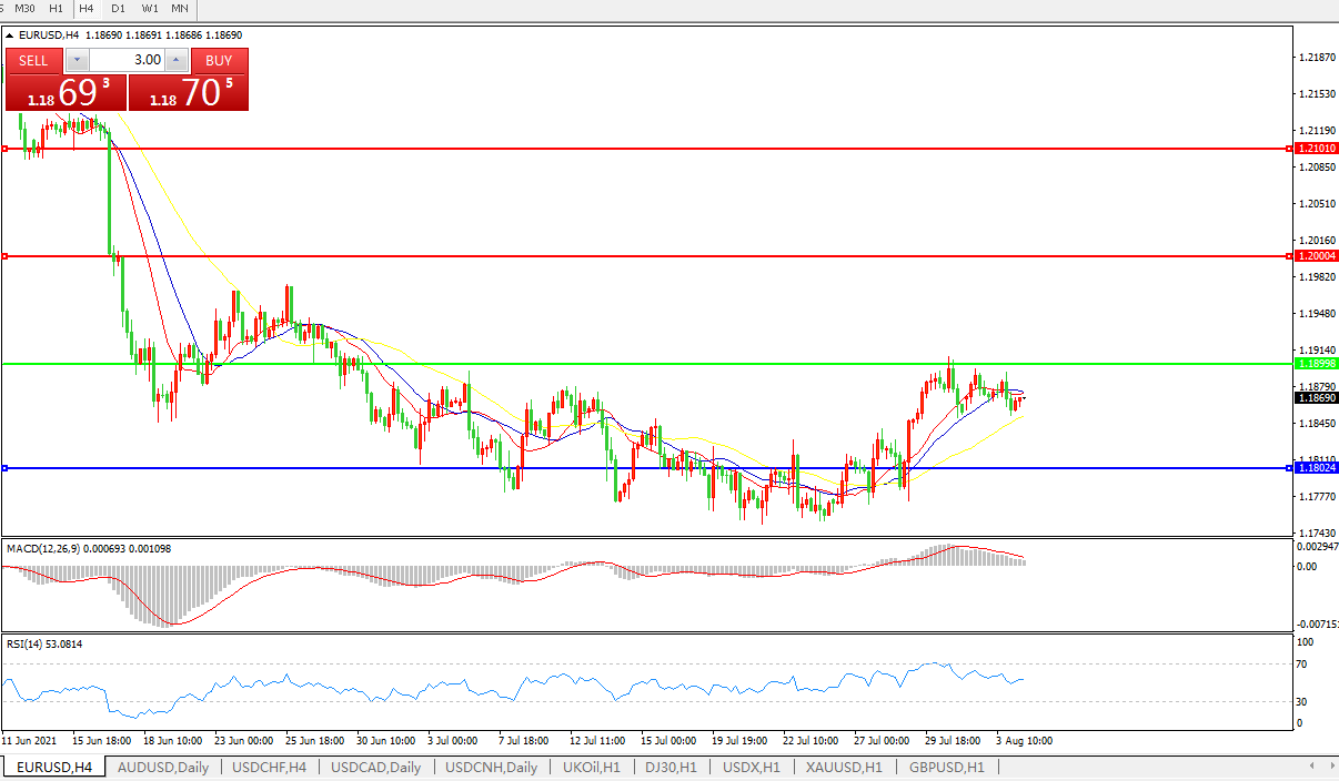 交易策略:1.1900下方看跌,目标1.1800、1.1700
