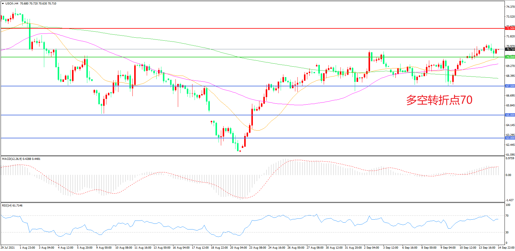 多空转折点:70.00