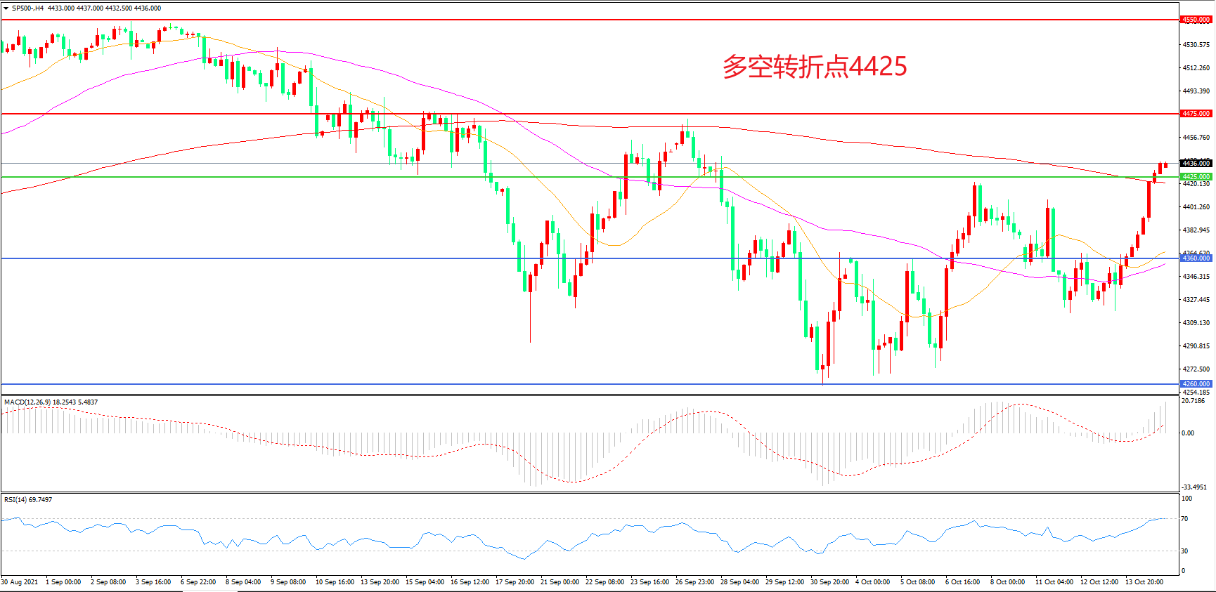 周四(10月14日),美国当周初请失业金人数超预期下降,一年半来首次低于30万人,经济数据向好及摩根士丹利等公司的靓丽财报推动了美股反弹,标普500大幅拉升,收报4434.25点。目前标准普尔500指数的8家成份股公司今天公布了财报,都超出了市场此前的预期,如果后续财报表现依然靓丽,标普500将再次出现飙升。