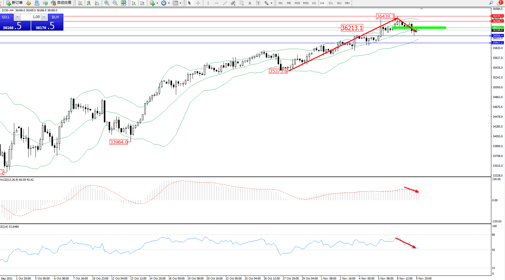 技术点评:多头动力延续布林带指标中上轨区间持续震荡上扬,高位抵达36439位置后遇阻,开始整理回撤,短期空头动力弱势下行,但整体上扬趋势走势依旧,布林带指标呈收口走势中,MACD指标处于多头区域维持整理平移,RSI指标处于多头区域持续震荡后开始缓慢下行;