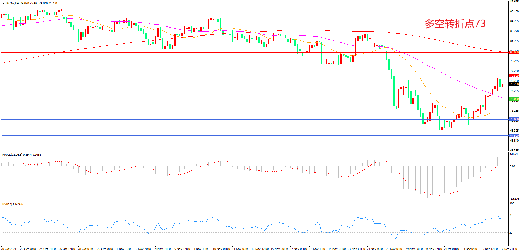 交易策略:在73.00之上看涨,目标76.50 80.00