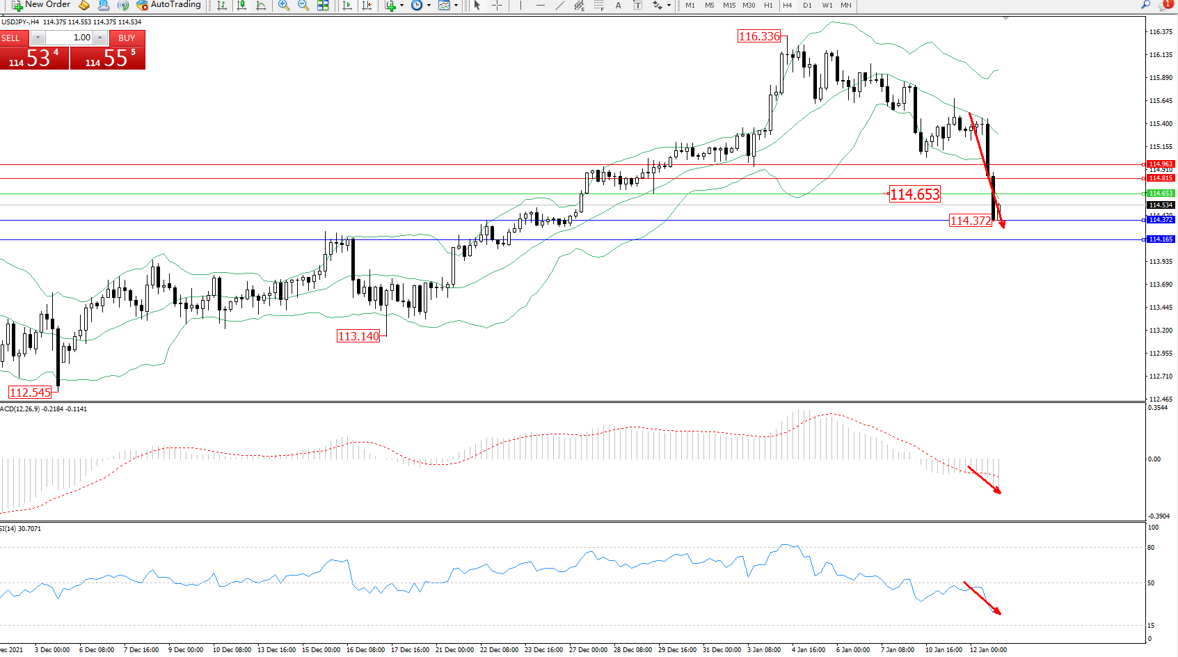 交易策略:114.653下方看跌,目标114.372、114.165