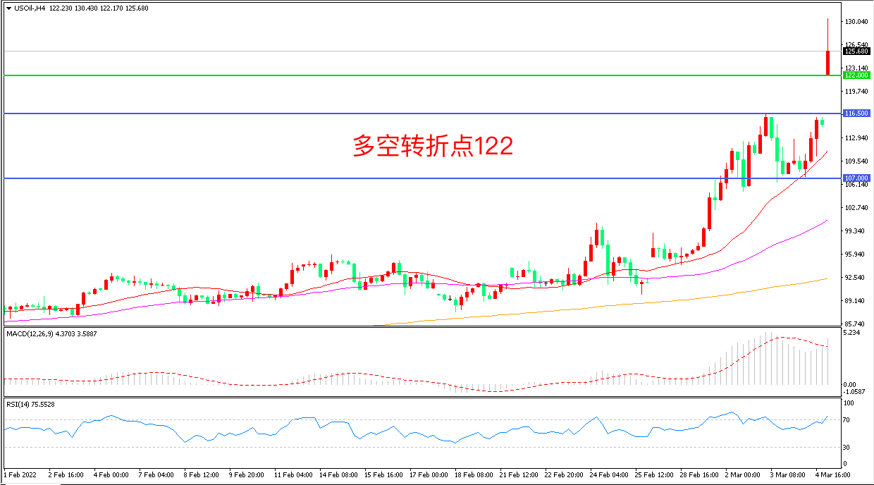 4小时图看,油价跳空高开,短期走势偏强,均线系统呈多头排列,MACD红柱增加,RSI指标走平,日内震荡上行概率较大。