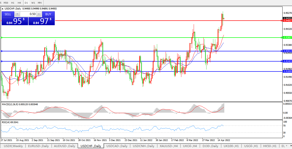 鹰派言论强化加息预期,美元兑瑞郎直线拉升